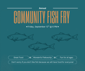 It is time for our Annual Community Fish Fry! We had such a wonderful time gathering for the food and fellowship with everyone in the community last year and we are looking forward to another evening full of great food, fellowship, and fun for all in attendance! On Friday, September 12th at 6 PM, we hope to see you here at GFBC for the Fish Fry. Don’t worry if you don’t like fish, we will have something special prepared for you too!